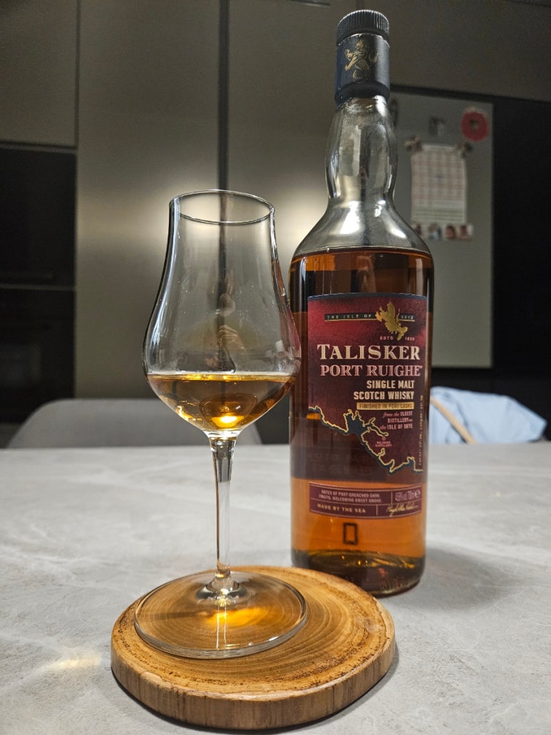 말린 오징어를 오래 씹은 뒤 입안에 남는 맴도는 맛과 탈리스커 다운 후추가 약간의 킥처럼 있지만, 그 비중이 크거나 강하지는 않고, 스모키함도 크지 않은 편이다.