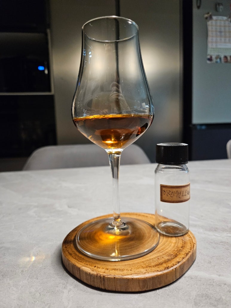 도수가 높지 않은데도 파를 잘랐을 때 느껴지는 베지털한 맵싹함이 있고 나프탈렌, 정향 같은 느낌도 은은하게 깔려있다.